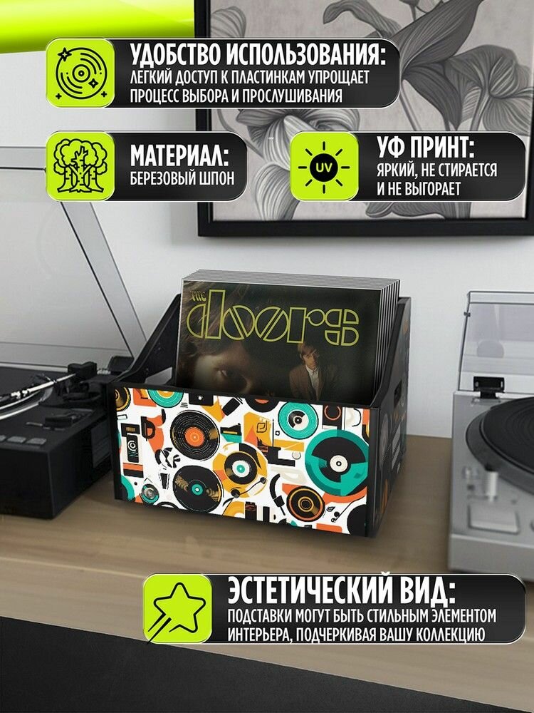Отзывы на Подставка (ящик, органайзер) для хранения виниловых пластинок с принтом "Музыка Винил (Диски, пластинки, паттерн) - 62503390"
