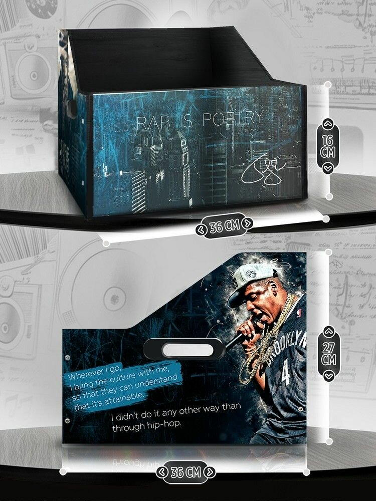 10 цен на Подставка (ящик, органайзер) для хранения виниловых пластинок с принтом "музыка Jay Z (Джей Зи, рэп, легенда, хип-хоп) - 52504001"