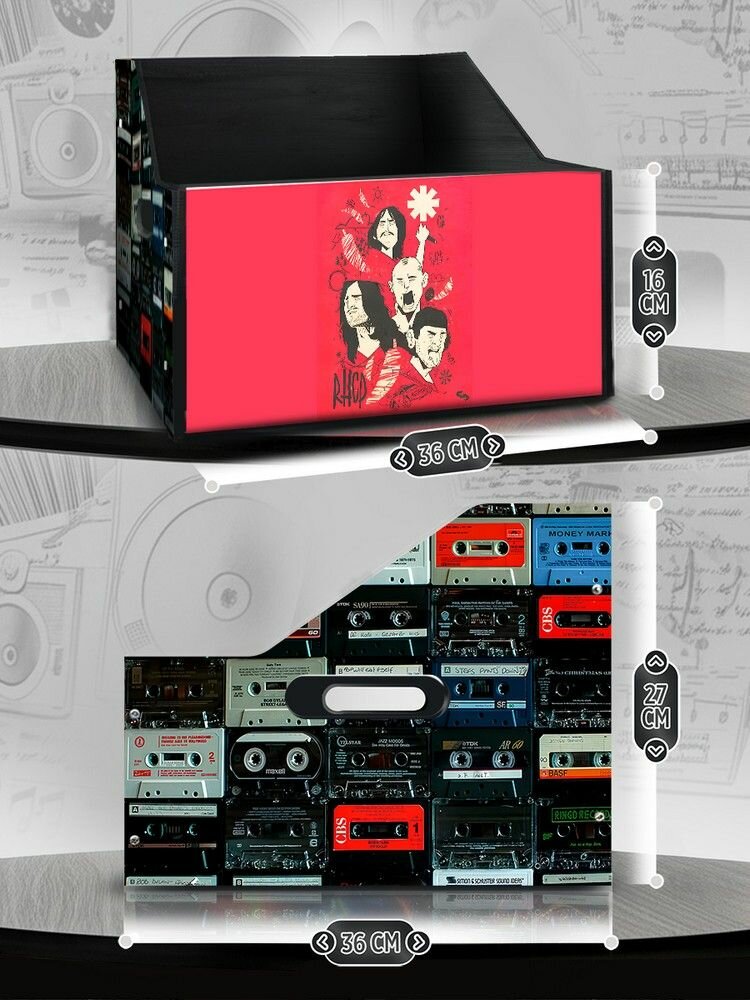 Подставка (ящик, органайзер) для хранения виниловых пластинок с принтом "Музыка Red Hot Chillie Peppers (Рэд Хот Чилли Пепперс, метал, группа, виниловая пластинка) - 62503389" информация:
