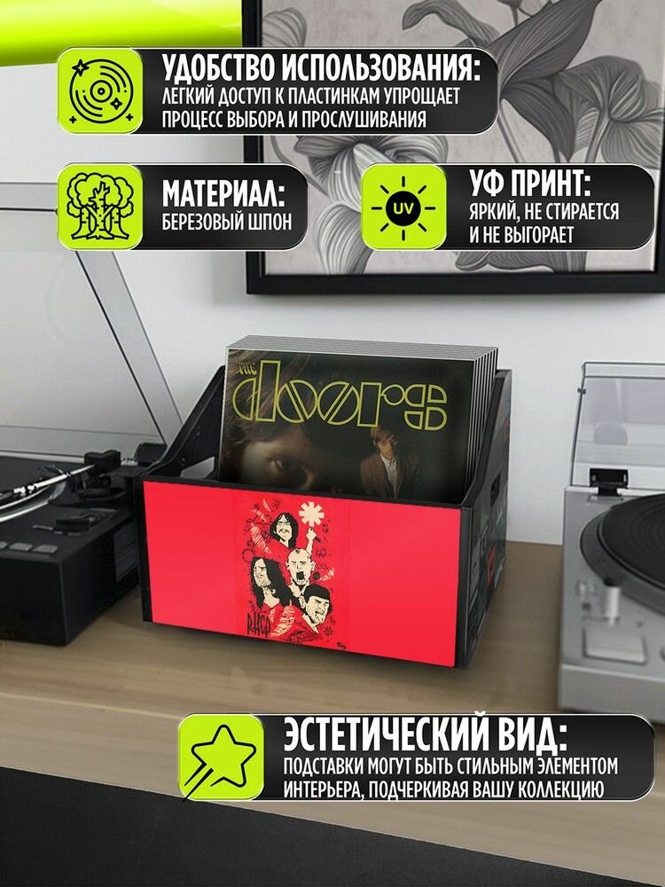 Отзывы на Подставка (ящик, органайзер) для хранения виниловых пластинок с принтом "Музыка Red Hot Chillie Peppers (Рэд Хот Чилли Пепперс, метал, группа, виниловая пластинка) - 62503389"