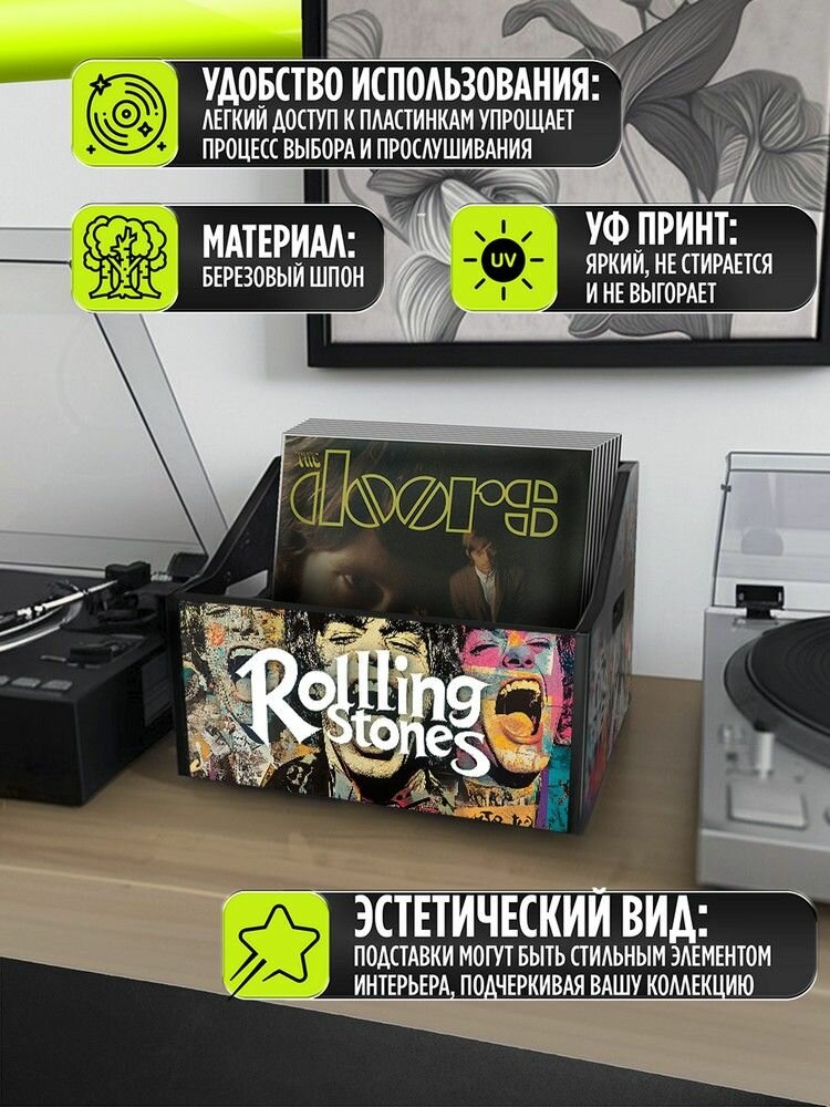 Отзывы на Подставка (ящик, органайзер) для хранения виниловых пластинок с принтом " Музыка The Rolling Stones (Роллинг стонс, Глэм Рок, Rock, Панк ) - 4250321"