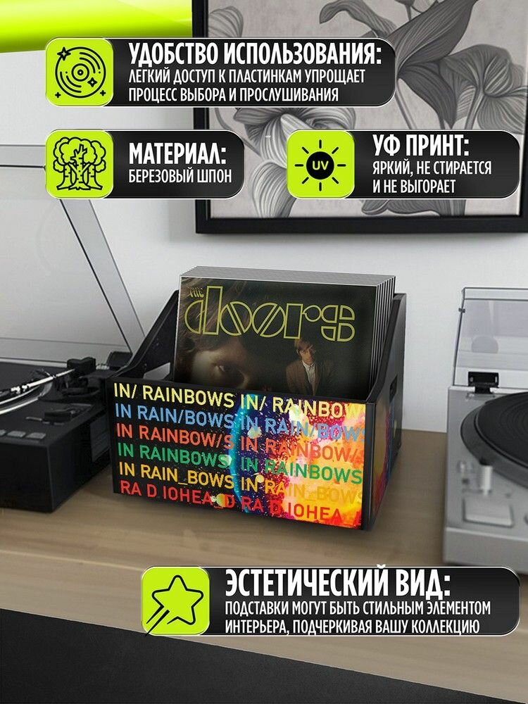 Отзывы на Подставка (ящик, органайзер) для хранения виниловых пластинок с принтом "музыка Radiohead (Радиохеад, Рок, Альтернатива, гитара, Creep, Том Йорк) -425033"