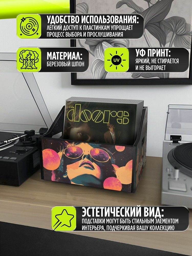 Отзывы на Подставка (ящик, органайзер) для хранения виниловых пластинок с принтом "Музыка очки (джаз винтаж, ретро, диско, плакат) - 4250323"