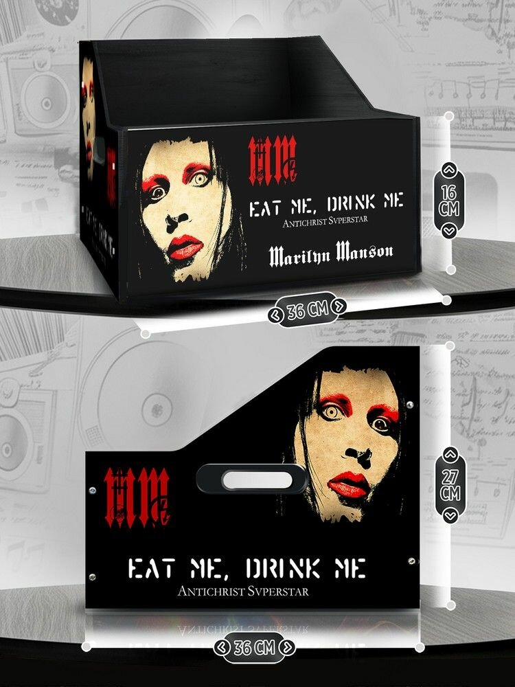Подставка (ящик, органайзер) для хранения виниловых пластинок с принтом "музыка Marilyn Manson (Мэрлин Мэнсон, рок, Дита фон Тиз) - 30325266" информация: