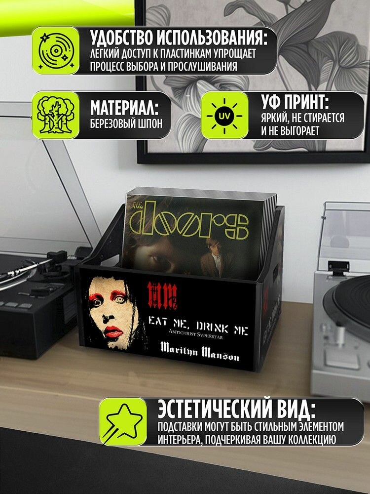 10 цен на Подставка (ящик, органайзер) для хранения виниловых пластинок с принтом "музыка Marilyn Manson (Мэрлин Мэнсон, рок, Дита фон Тиз) - 30325266"