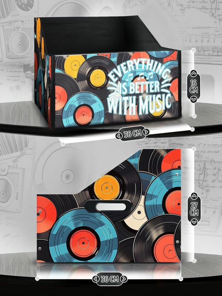 Подставка (ящик, органайзер) для хранения виниловых пластинок с принтом "музыка винил - 30325267" информация:
