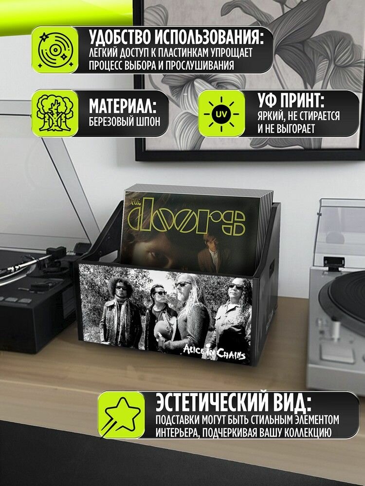 10 цен на Подставка (ящик, органайзер) для хранения виниловых пластинок с принтом "Музыка Alice in Chains (Элис ин Чейнс, рок, метал, группа, виниловая пластинка) - 62503388"