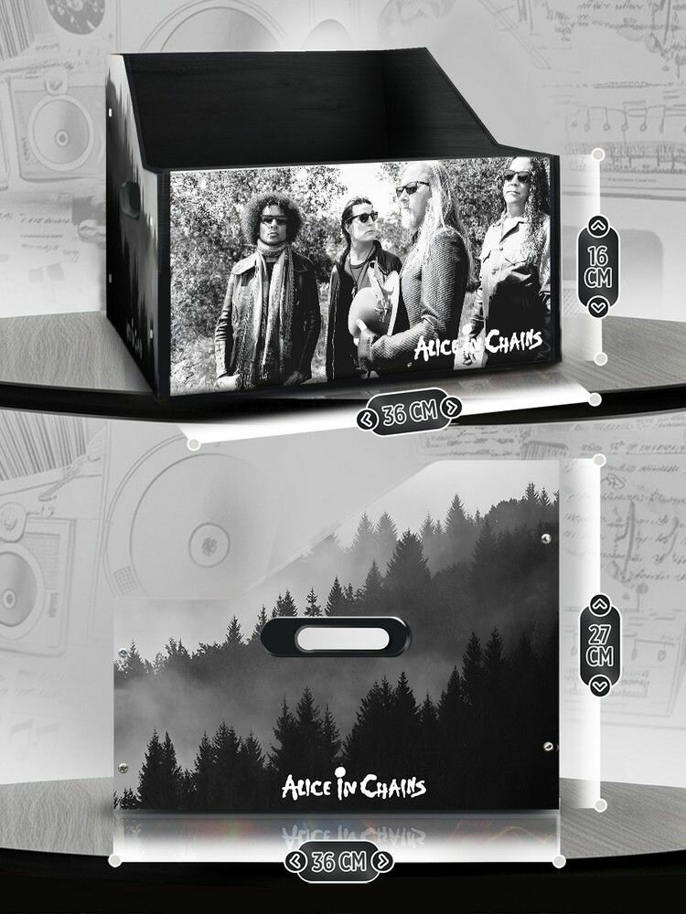 Подставка (ящик, органайзер) для хранения виниловых пластинок с принтом "Музыка Alice in Chains (Элис ин Чейнс, рок, метал, группа, виниловая пластинка) - 62503388" информация:
