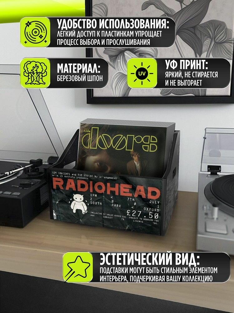 Отзывы на Подставка (ящик, органайзер) для хранения виниловых пластинок с принтом "музыка Radiohead (Радиохэд, Том Йорк, рок, металл, панк) - 30325292"