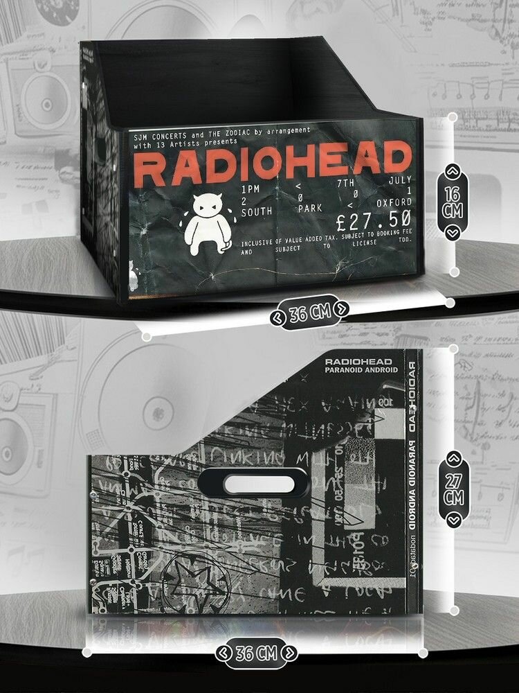 10 цен на Подставка (ящик, органайзер) для хранения виниловых пластинок с принтом "музыка Radiohead (Радиохэд, Том Йорк, рок, металл, панк) - 30325292"
