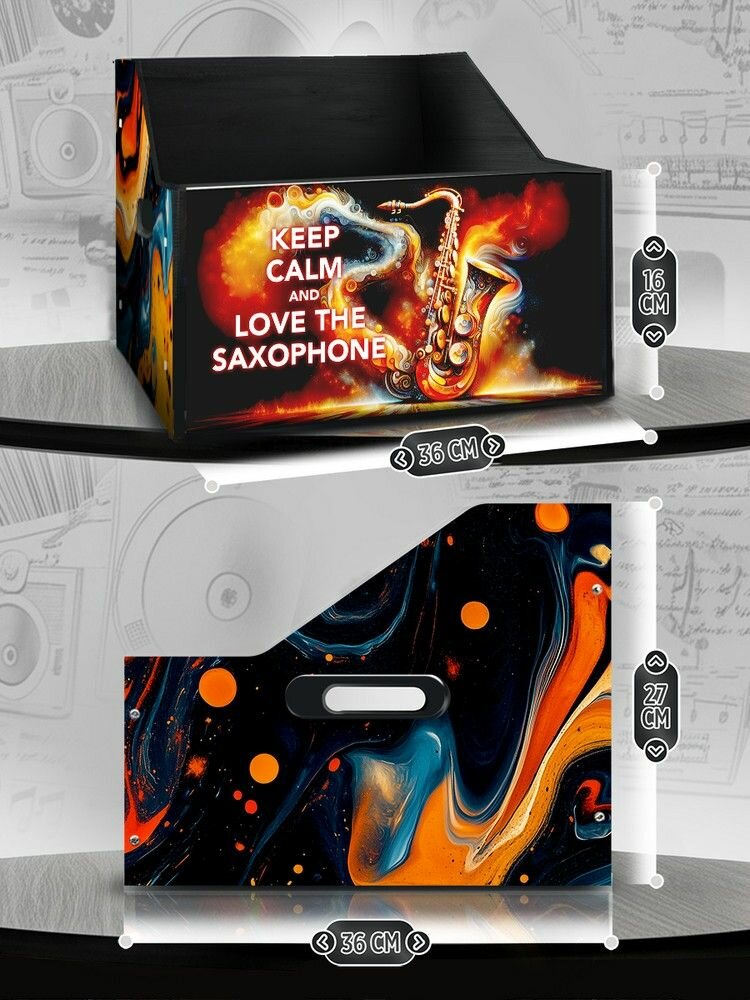 Подставка (ящик, органайзер) для хранения виниловых пластинок с принтом "музыка саксофон (музыкальные инструменты, джаз, блюз, keep calm) - 30325268" информация: