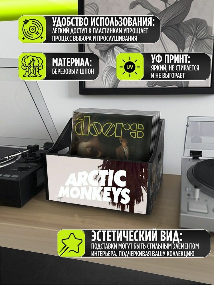 10 цен на Подставка (ящик, органайзер) для хранения виниловых пластинок с принтом "Музыка Arctic Monkeys (Рок группа, колонка, виниловая пластинка) - 62503405"