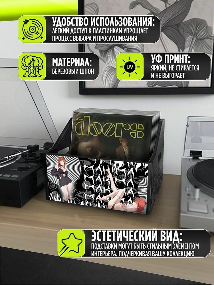 Подставка (ящик, органайзер) для хранения виниловых пластинок с принтом "аниме человек бензопила (chainsaw man, макима, девушки, эротика) - 30325260" информация:
