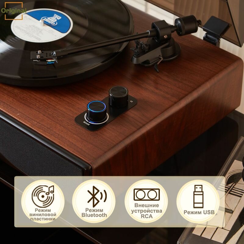 Виниловый проигрыватель, Bluetooth, USB, RCA, встроенные динамики, высокая мощность, 30Вт информация:
