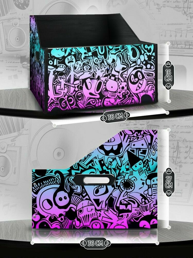 10 цен на Подставка (ящик, органайзер) для хранения виниловых пластинок с принтом "эстетика Граффити (значки, символы, стикер бомбинг, олд скул, тату) - 52504015"