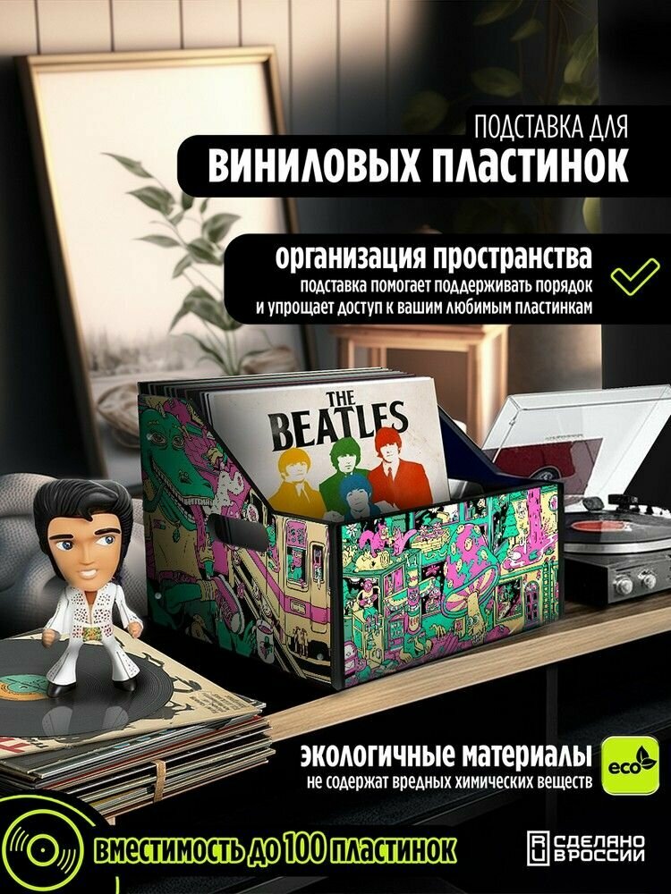 10 цен на Подставка (ящик, органайзер) для хранения виниловых пластинок с принтом "эстетика Психоделика (сюр, грибы, крокодил, мультяшки, кислота) - 52504009"