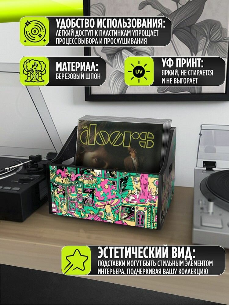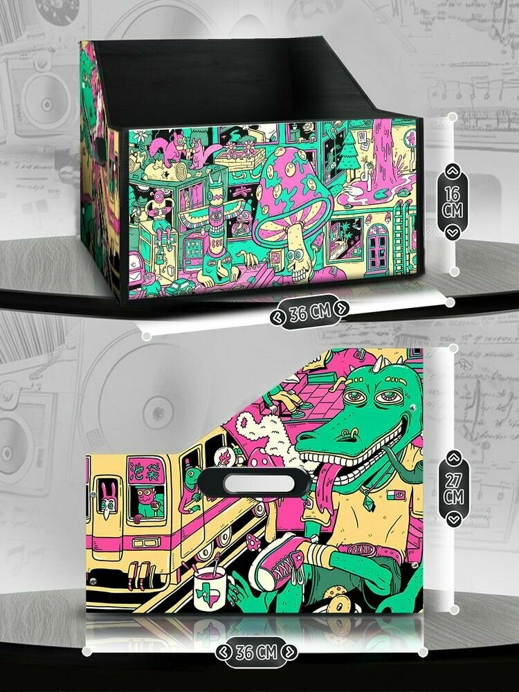 Подставка (ящик, органайзер) для хранения виниловых пластинок с принтом "эстетика Психоделика (сюр, грибы, крокодил, мультяшки, кислота) - 52504009" информация: