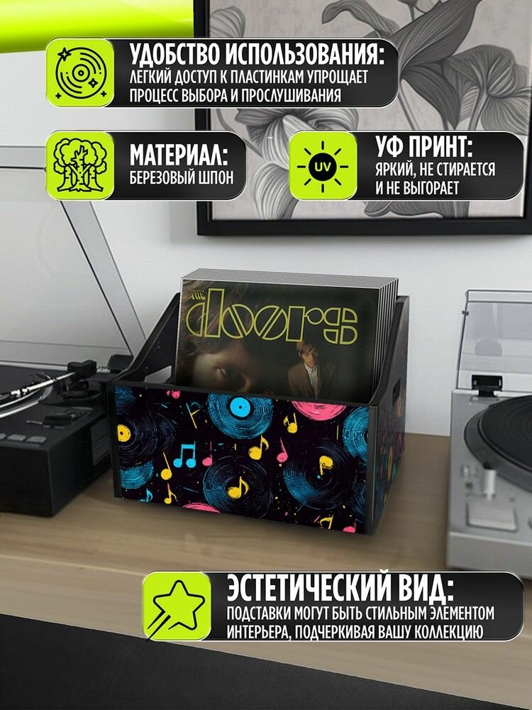 10 цен на Подставка (ящик, органайзер) для хранения виниловых пластинок с принтом "эстетика Музыка (ноты, фанк, пластинки) - 52504005"