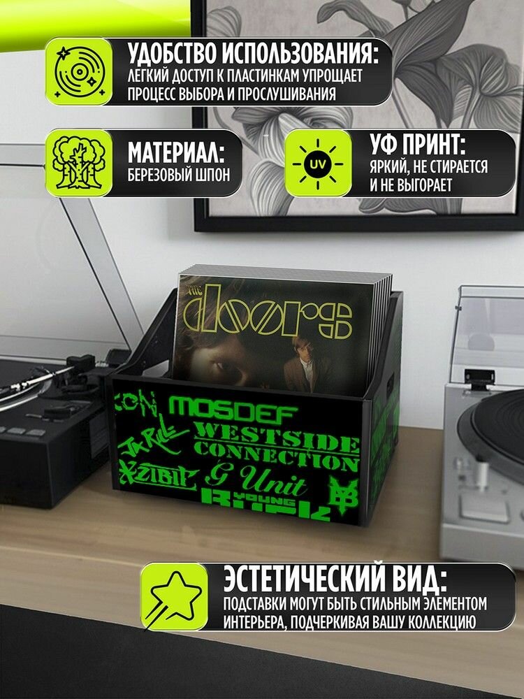 Отзывы на Подставка (ящик, органайзер) для хранения виниловых пластинок с принтом "эстетика Рэп (музыка, улицы, хип-хоп, надписи, граффити) - 52503246"
