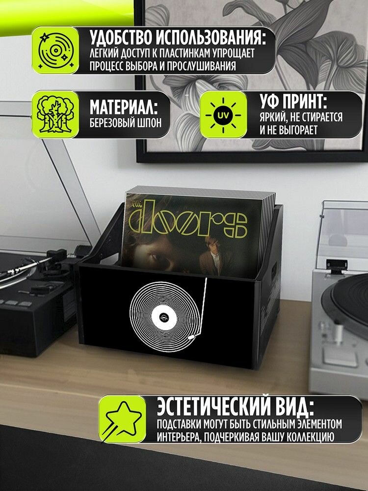 Отзывы на Подставка (ящик, органайзер) для хранения виниловых пластинок с принтом "эстетика Минимализм (эквалайзер, проигрыватель) - 52504004"