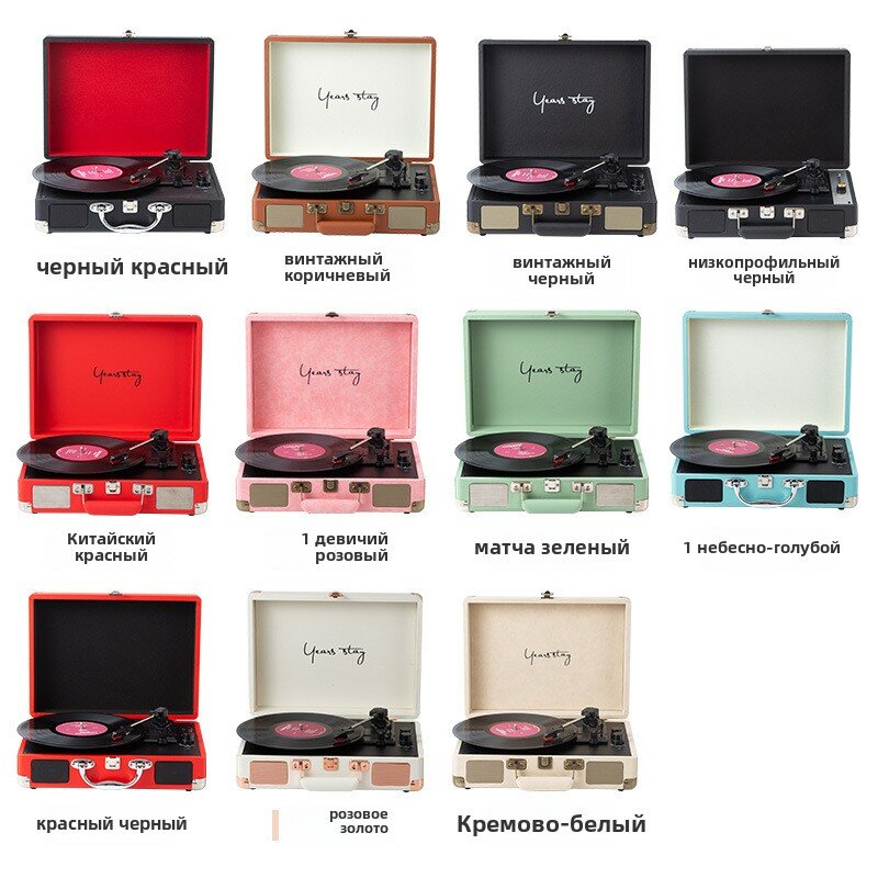 Проигрыватель Виниловых Пластинок Bluetooth С Динамиками Портативный Поворотным