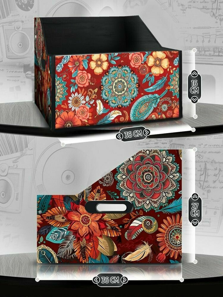 Подставка (ящик, органайзер) для хранения виниловых пластинок с принтом "мандала абстракция (эзотерика, медитация, узоры) - 30325284" информация: