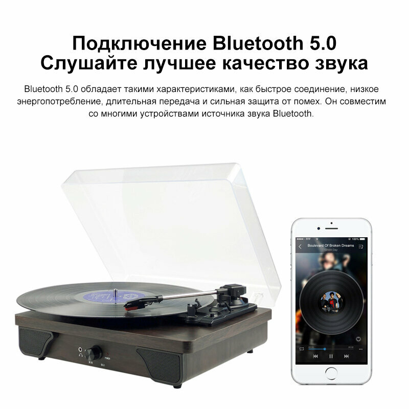 Проигрыватель Виниловых Пластинок Bluetooth С Динамиками информация: