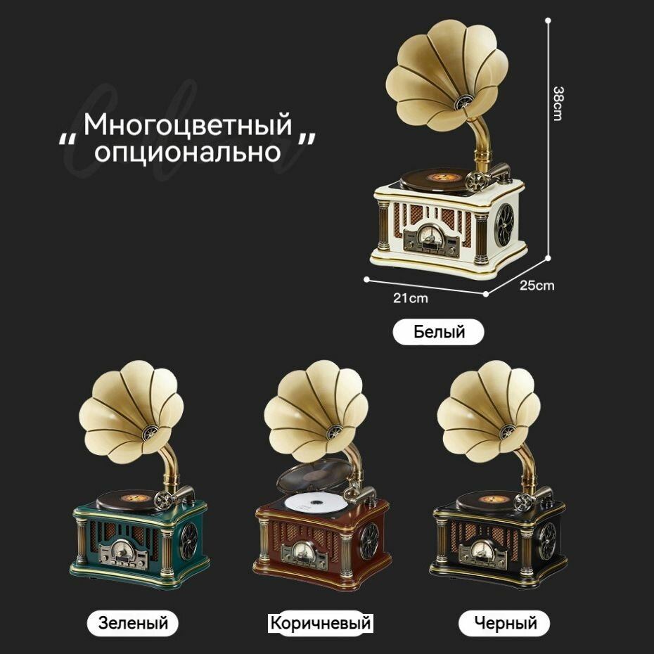 Отзывы на Виниловый проигрыватель с металлической трубой Audio-Retro MI1906CD, радиоприёмник FM, CD, USB разъёмы, Bluetooth