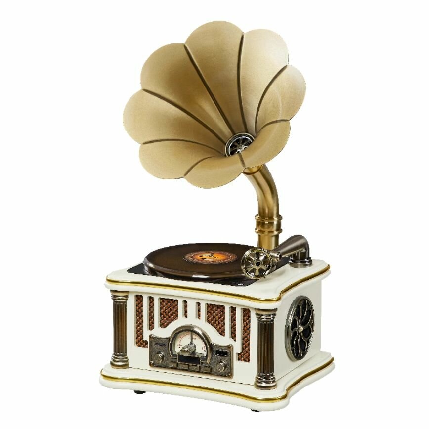 Виниловый проигрыватель с металлической трубой Audio-Retro MI1906CD, радиоприёмник FM, CD, USB разъёмы, Bluetooth информация: