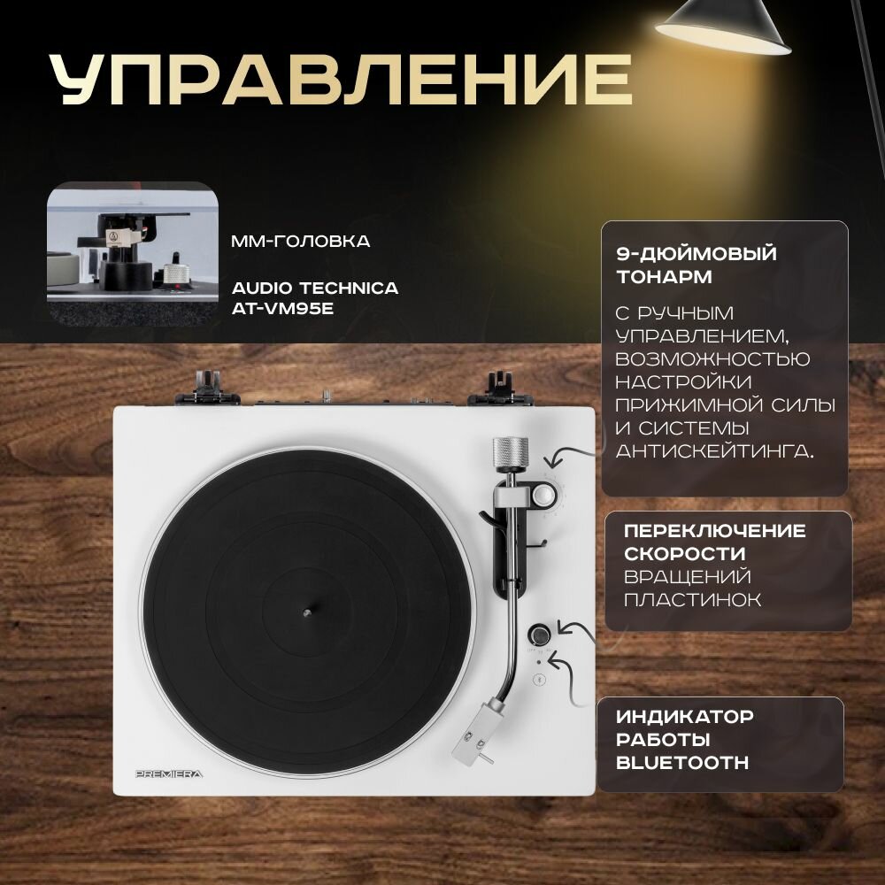 Проигрыватель виниловых дисков с Bluetooth, серия PREMIERA DELTA, цвет белый информация: