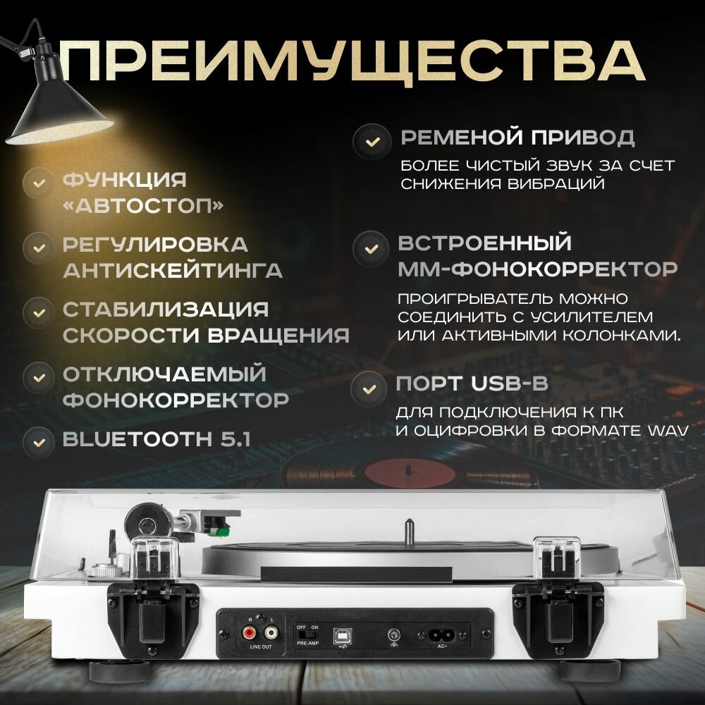 10 цен на Проигрыватель виниловых дисков с Bluetooth, серия PREMIERA DELTA, цвет белый