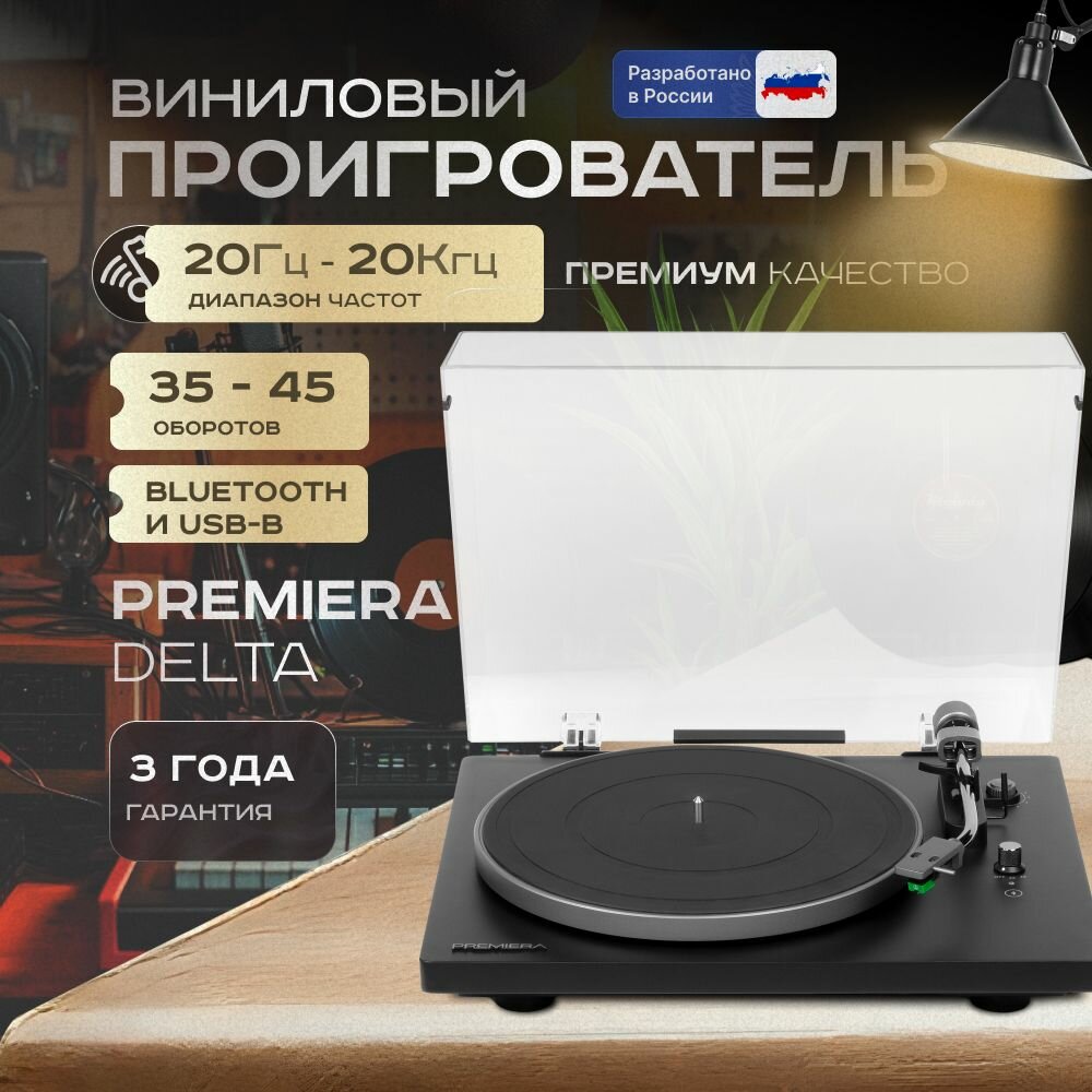 Проигрыватель виниловых дисков с Bluetooth, серия DELTA PREMIERA, цвет черный информация: