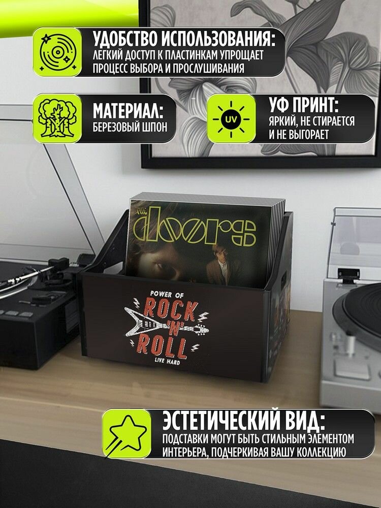 Подставка (ящик, органайзер) для хранения виниловых пластинок с принтом "Разное Музыка (Green Day, My Chemical Romance, Evanescence, BMTH, винил) - 6250453" информация: