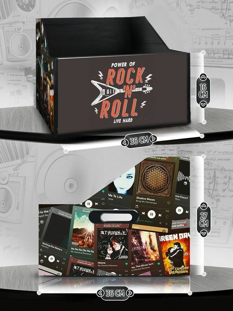 10 цен на Подставка (ящик, органайзер) для хранения виниловых пластинок с принтом "Разное Музыка (Green Day, My Chemical Romance, Evanescence, BMTH, винил) - 6250453"