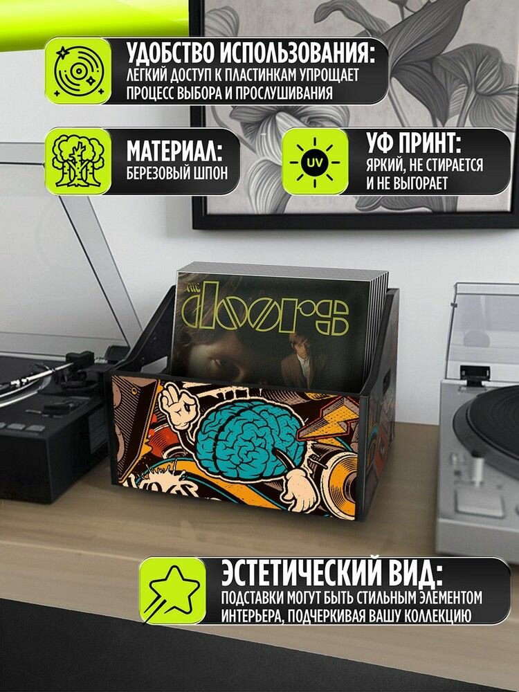 Подставка (ящик, органайзер) для хранения виниловых пластинок с принтом "Разное Космос (психоделика, ретро автобус, цветы, скелет ) - 425036" 2 190 ₽