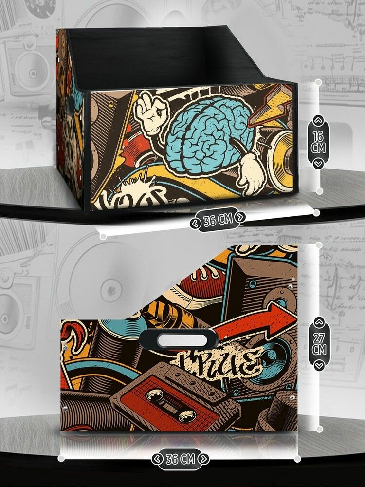 Подставка (ящик, органайзер) для хранения виниловых пластинок с принтом "Разное стри арт (Бэнкси, винил, Искусство, Graffity, Граффити) - 4250311" информация: