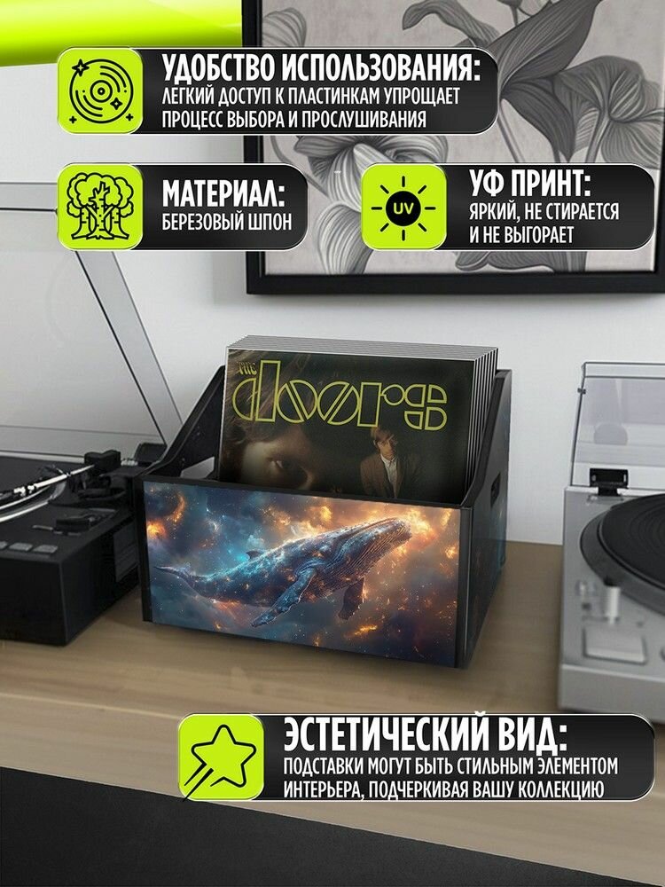 10 цен на Подставка (ящик, органайзер) для хранения виниловых пластинок с принтом "Разное Космос (Фантастика, кит, созвездия, астрология) - 62503387"
