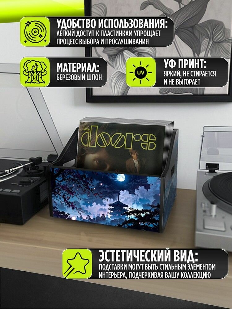Подставка (ящик, органайзер) для хранения виниловых пластинок с принтом "Разное Природа (Горы, поход, Азия, Китай, Япония, аниме) - 6250447" информация: