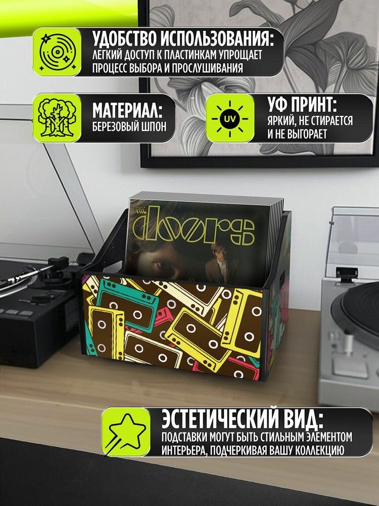 Подставка (ящик, органайзер) для хранения виниловых пластинок с принтом "Разное поп арт(кассеты, комикс, бум, ретро, винтаж) - 425017" информация: