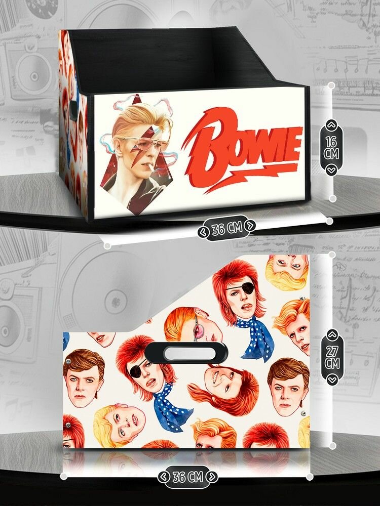 Подставка (ящик, органайзер) для хранения виниловых пластинок с принтом "Разное Музыка (Девид Боуи, Dawid Bowie, гитара, винил) - 6250452" информация: