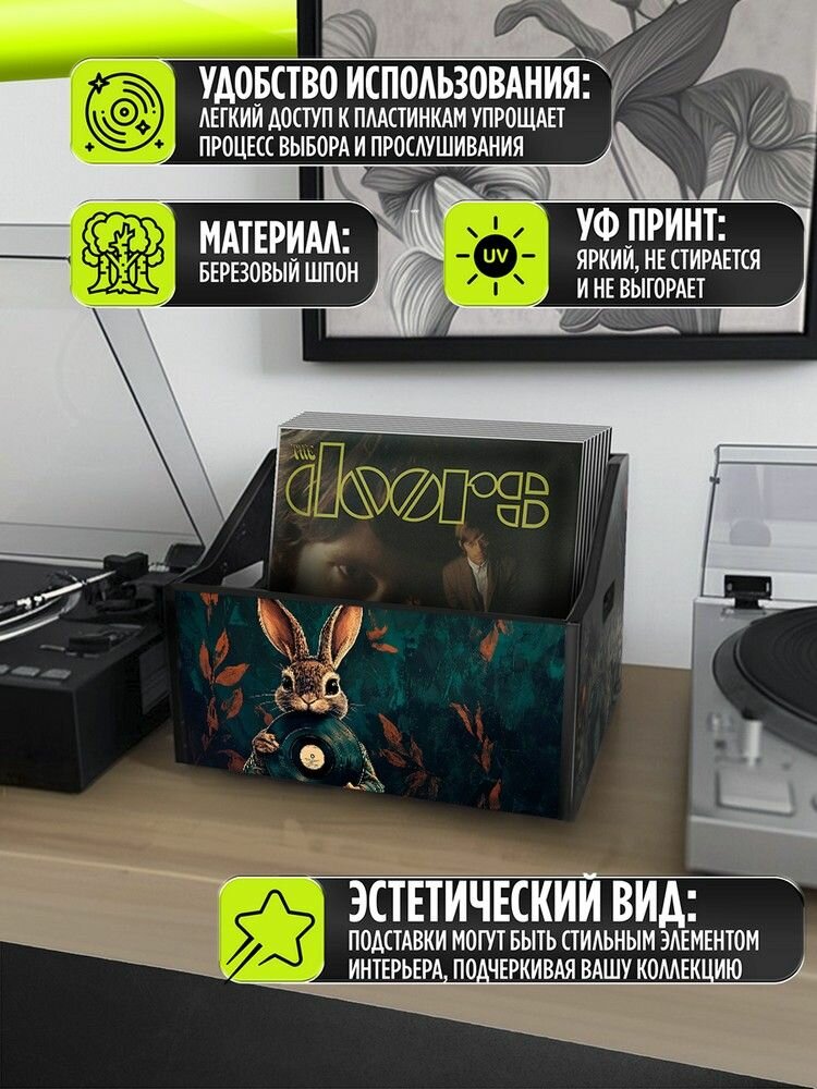 Отзывы на Подставка (ящик, органайзер) для хранения виниловых пластинок с принтом "Разное Животные (Природа, заяц, фэнтези, виниловая пластинка) - 6250445"
