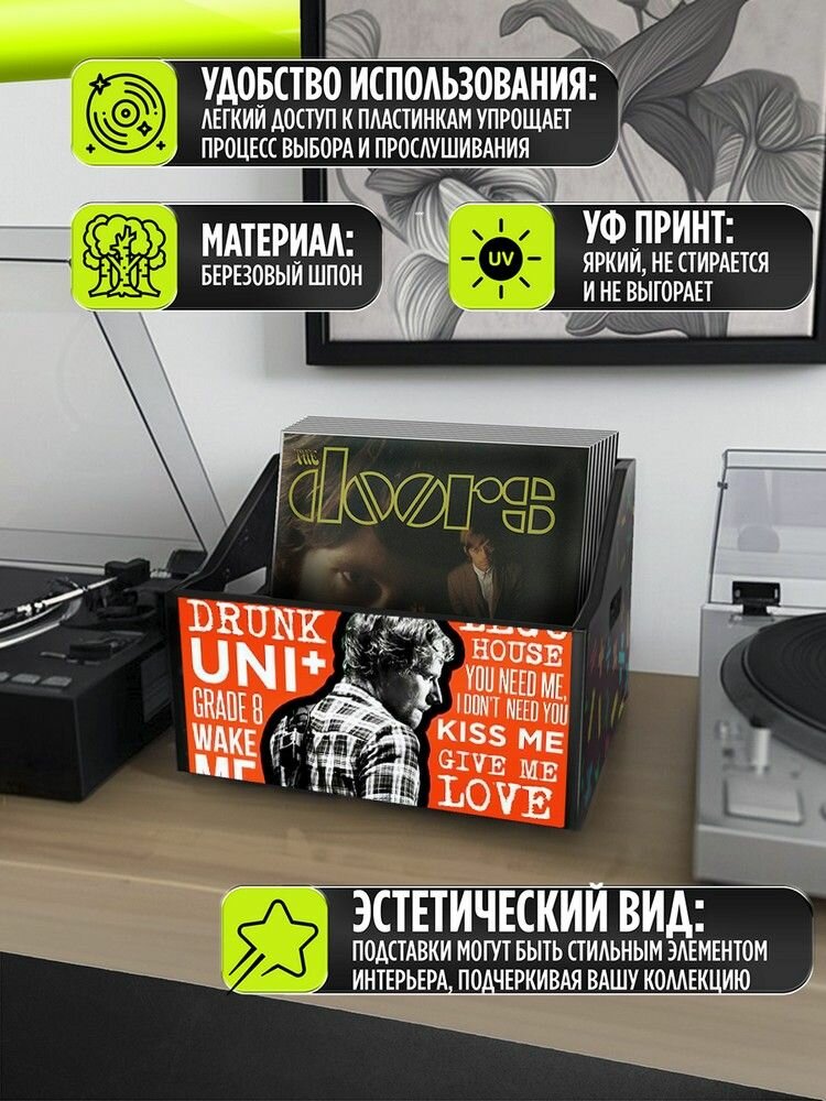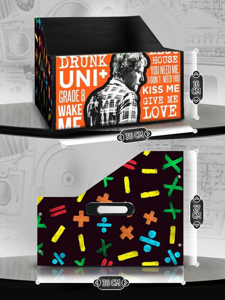 Подставка (ящик, органайзер) для хранения виниловых пластинок с принтом "Разное Музыка (Эд Ширан, гитара, винил) - 6250450" информация: