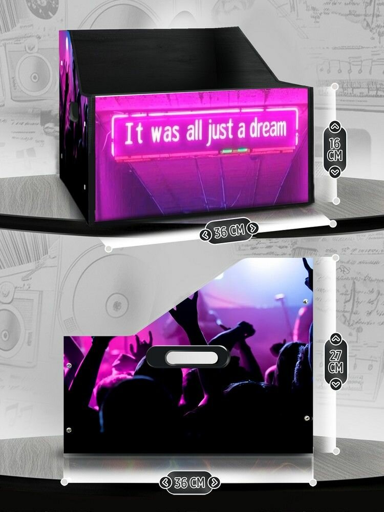 Подставка (ящик, органайзер) для хранения виниловых пластинок с принтом "Разное Музыка (Дискотека, клуб, диджей, танцы) - 6250449" информация: