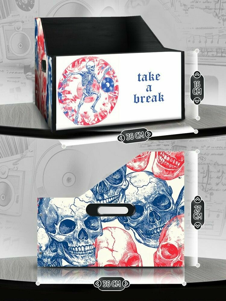 Подставка (ящик, органайзер) для хранения виниловых пластинок с принтом "Разное Иллюстрация (Череп, скелет, музыка, виниловая пластинка) - 6250444" информация: