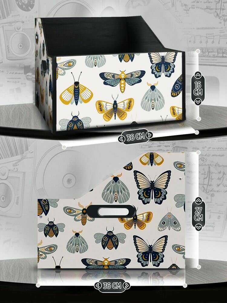 Подставка (ящик, органайзер) для хранения виниловых пластинок с принтом "Разное Насекомые (Узор, бабочки, паттерн, виниловая пластинка) - 62503401" информация: