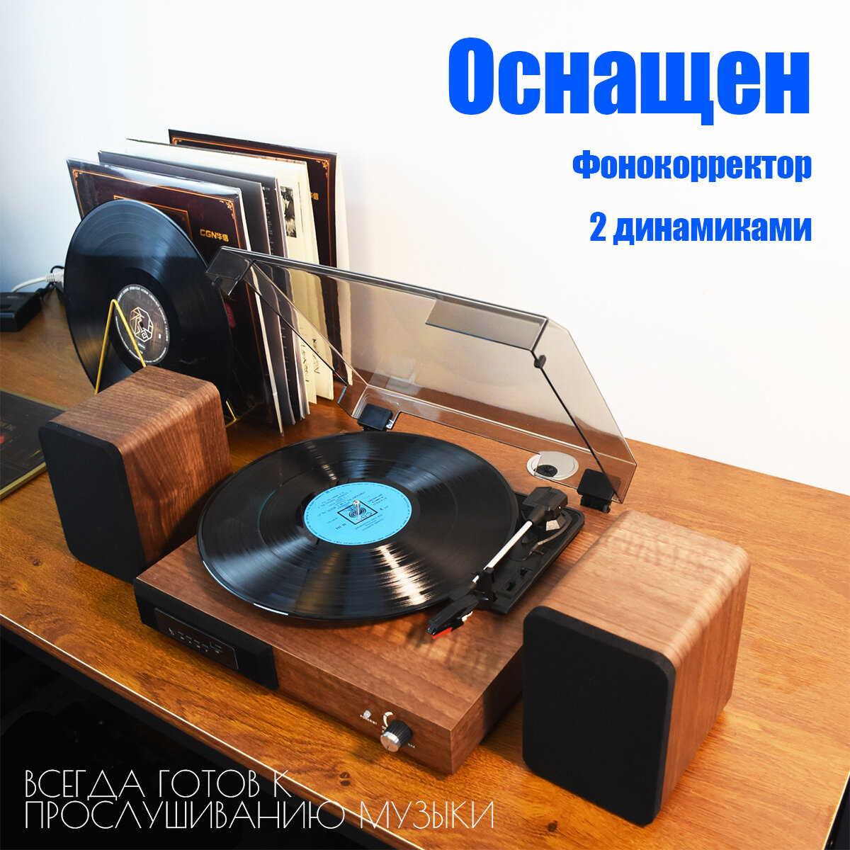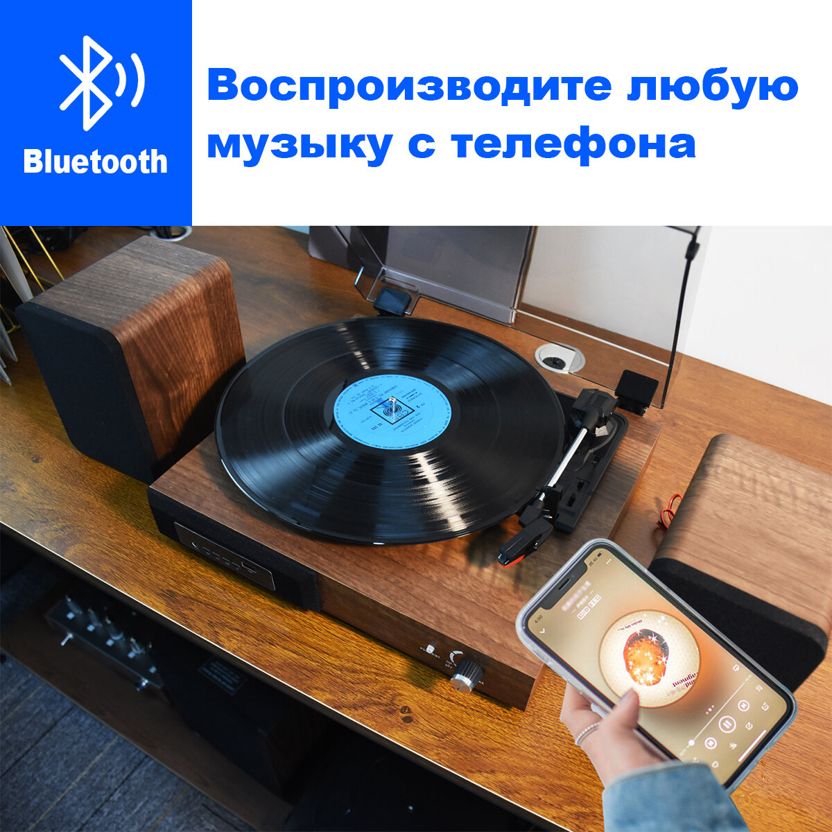 Проигрыватель виниловых пластинок с Bluetooth, ретро-граммофон с двумя колонками, USB, 3.5 мм, RCA, три скорости воспроизведения информация: