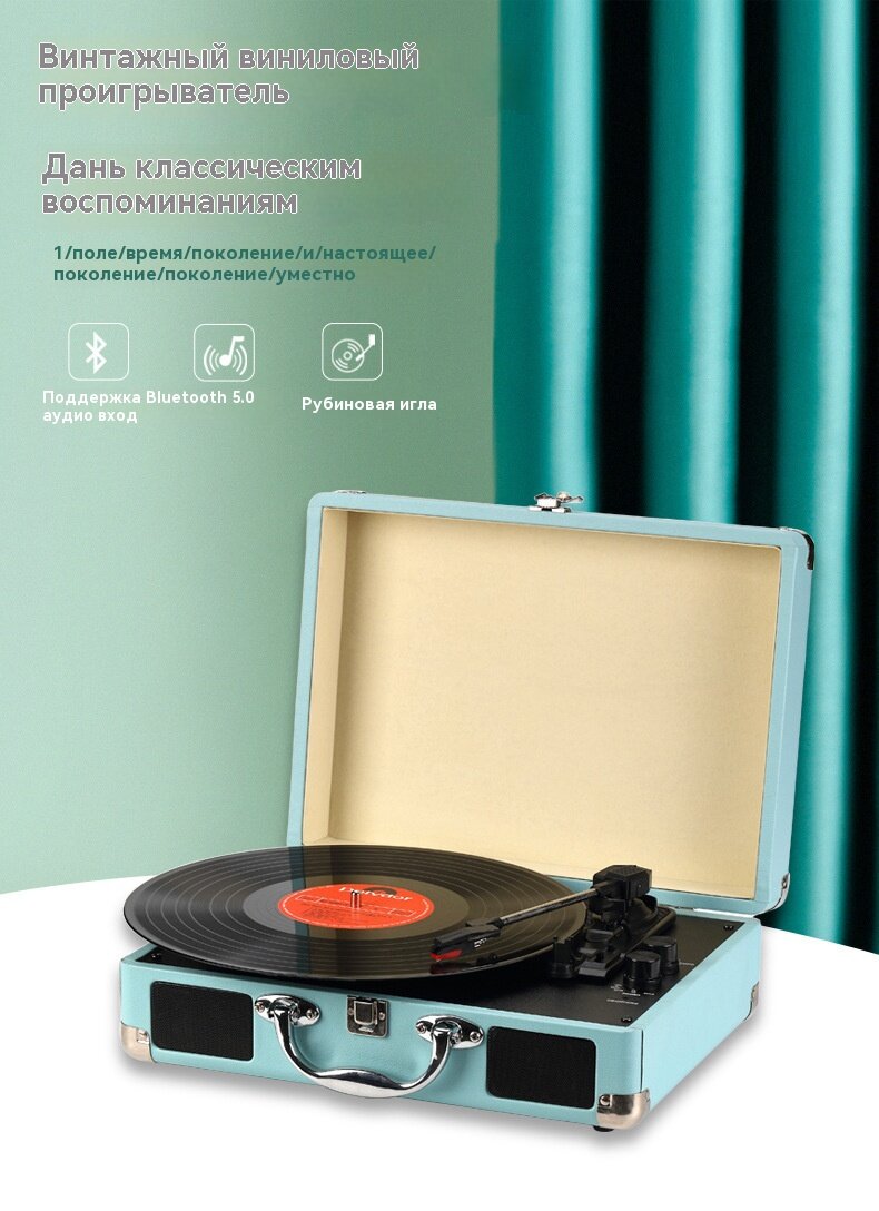 Проигрыватель Виниловых Пластинок Bluetooth С Динамиками Портативный Поворотным