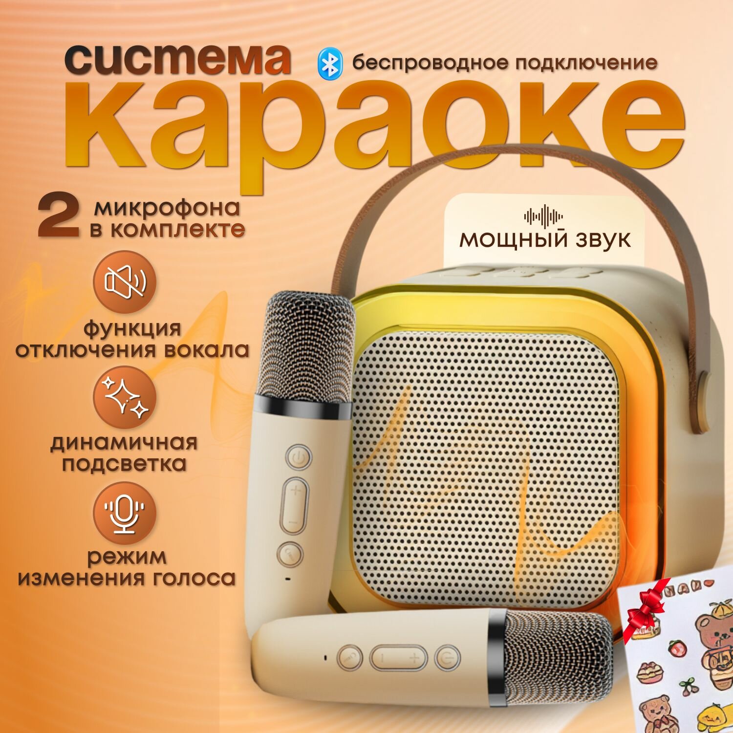 10 цен на Детская караоке система с двумя беспроводными микрофонами и колонкой (бежевый)