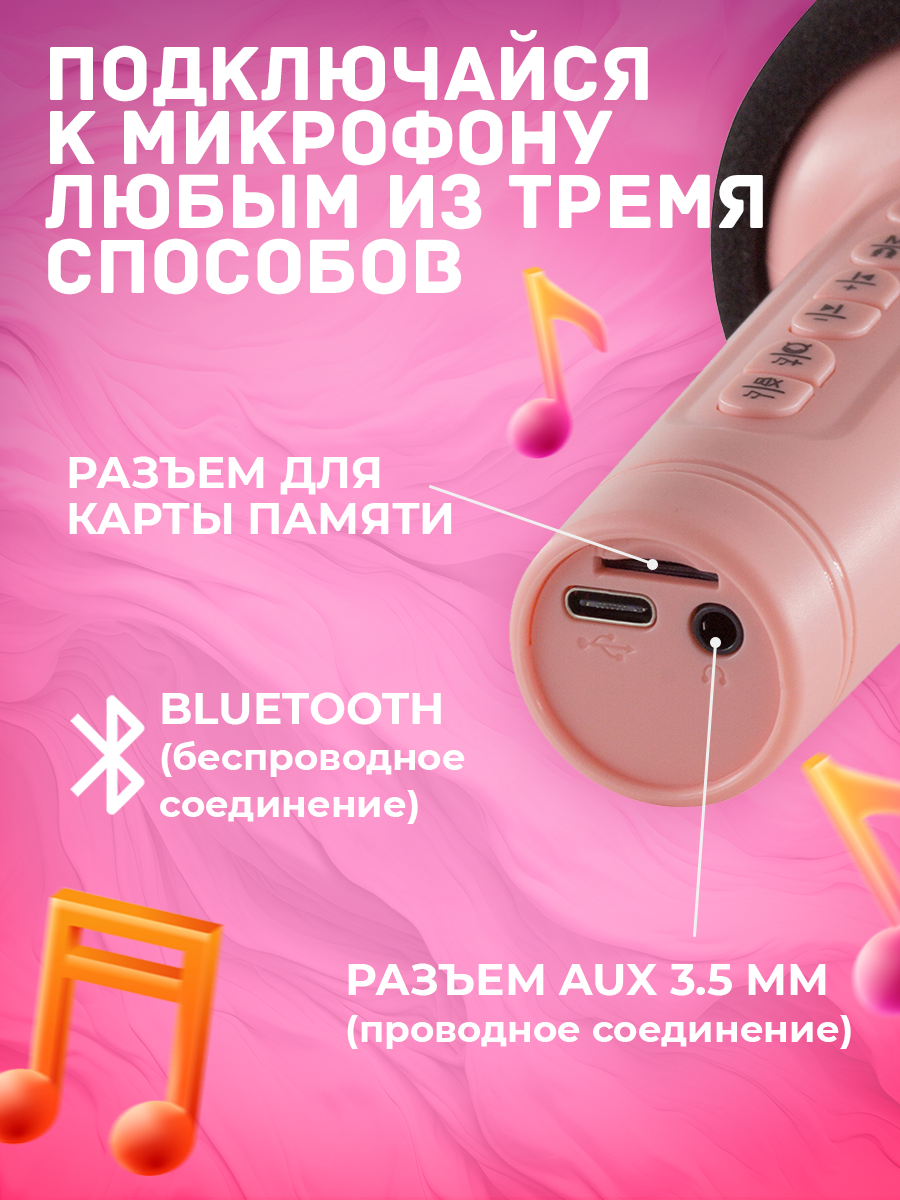 Беспроводная микрофон колонка портативная, Bluetooth 5.3, розовый, караоке система, микрофон караоке, микрофон с колонкой информация: