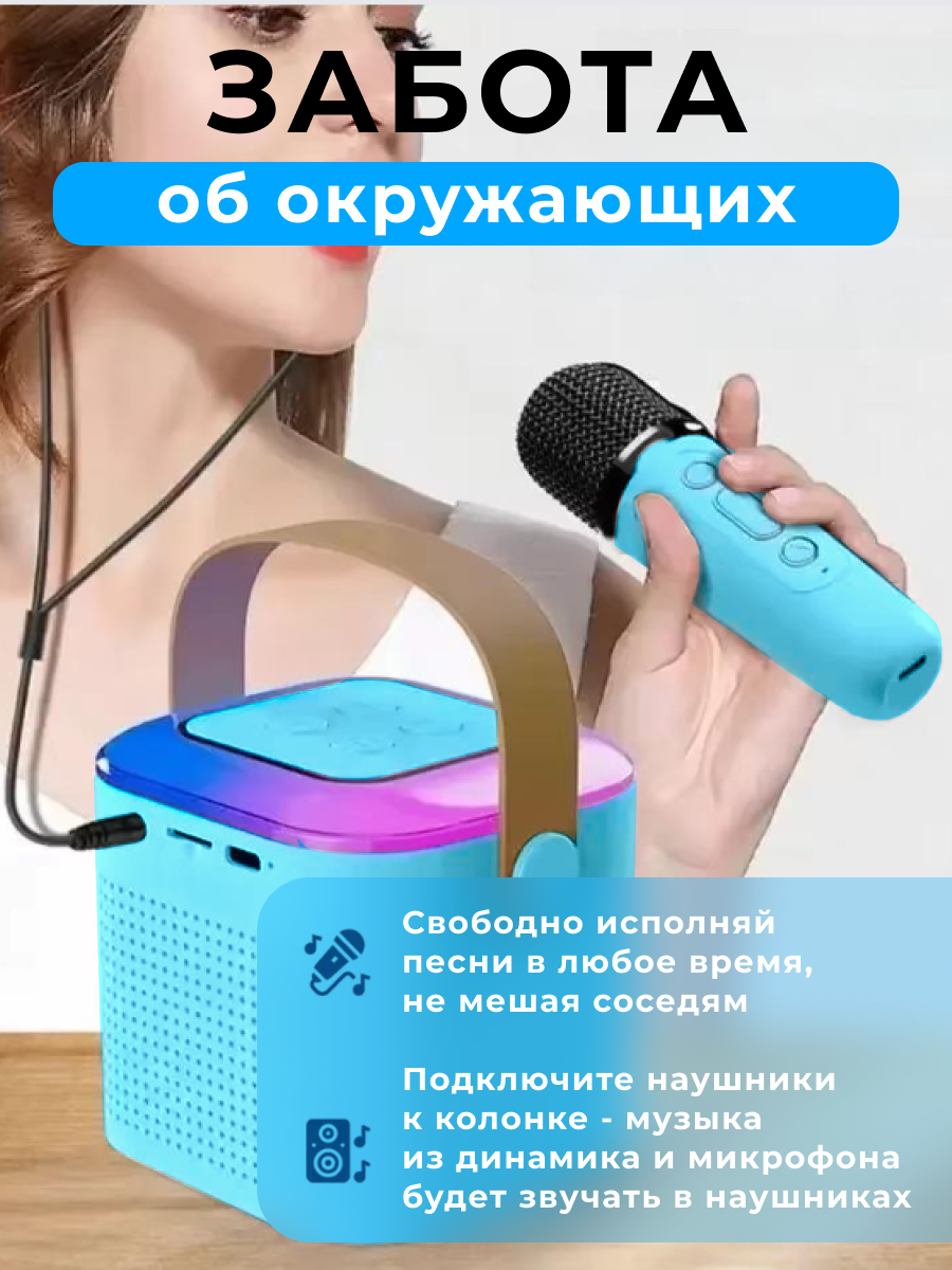 Детское беспроводное караоке с двумя микрофонами и колонкой, с RGB-подсветкой, цвет синий информация: